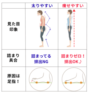 歩くときも立つときも、必要のないところに力が入るため、筋肉の使い方がくずれ、太りやすいクセがついてしまうのです。